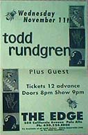 ツアー前半(西海岸、7日のLA近郊14日のシアトルまで)は、およそ20曲ほどのセットはだいたいいつもやるソロの曲中心に、途中からジェシーが加わりボサノバナンバーを数曲。今回の趣向のTRTVとのリンクもいくつか行われた。コンサート直前に撮られた360度パノラマ写真をライブの次の日に、ラジオではほぼ毎日数時間後に一曲がアップロードされていた。CHATはライブの中の一部でトッドと一部コミニュケーションを取ることができた。でもけっこう不安定で15人ぐらいのメンバーがいつも加わっていたのでcgiの負荷がかかっていたらしい。途中で落ちたり、なかなかつながらなかったり、当のトッドの会場からのアクセスさえライブ中何度もおちるという状態だった。速記者(というより速タイプ者)はアメリカのメーリングリストのメンバーがほとんどで、トッドのしゃべり以外(曲の最中)はステージの様子、服、楽器など質問できるというユニークな感じだった。10日のサンタクルーズではReal Playerでのライブも放送され、今でも前半の途中から1時間20分がいつでも見られる状態になっている。(会場では5曲入りCDとTシャツが売っていた!手に入れたのでご覧あれ)
