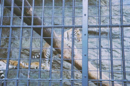 ところで、動物園の猛獣ということになりますと、檻に入っていることが多かったりします。たとえば、移転前の野毛山動物園なんかですとこんな感じになってまして、写真に撮ってみると檻が極めて邪魔です。檻の格子はピッチが狭くて黒くてつやがあって太いし、手持ちのレンズが暗いので前ボケとして処理することも困難です。