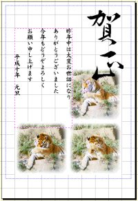 ハガキ印刷をターゲットにして作られたソフトというのは有り難いもので、用意されているテンプレートに少し手を加えるだけで、普通の人がなんとなく頭に浮かぶようなデザインは網羅できちゃうんですね。
