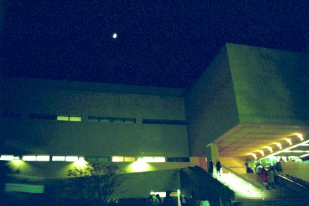 風呂から出て甲府へ取って返し、会場となる山梨県民文化会館へ。月は空高く。(JPEG, 30375bytes)