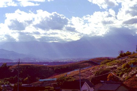 日射しを背に豊かな雲の表情。(JPEG, 32027bytes)