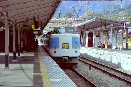 乗ってきた鈍行の後を追って特急あずさが。(JPEG, 43819bytes)