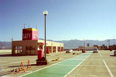 駅前のSATYの屋上の駐車場。(JPEG, 27295bytes)