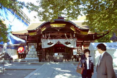神社の本殿。工事中だった。(JPEG, 54663bytes)