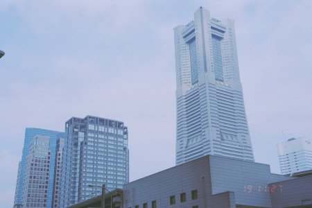 - 桜木町駅を出て見上げるとランドマークが。 (JPEG, 21646bytes)