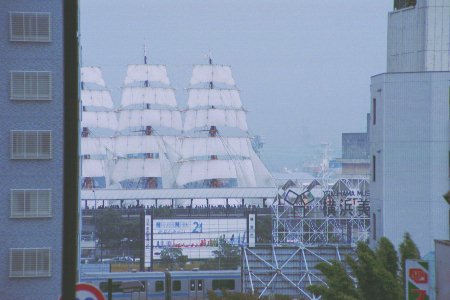 - MM21の方を振り返るとビルの間に帆船が。日本丸ですかね。 (JPEG, 28475bytes)