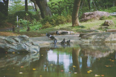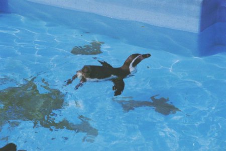 - ペンギンのプール。円偏光フィルターで水面の反射を抑えてみましたが、抑えすぎたようです。 (JPEG, 25396bytes)