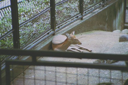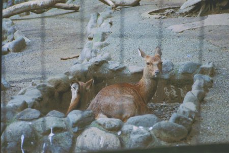 - 動物園に入ってすぐの鹿。二つ折りで寝ている (JPEG, 41354bytes)