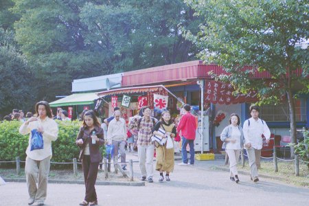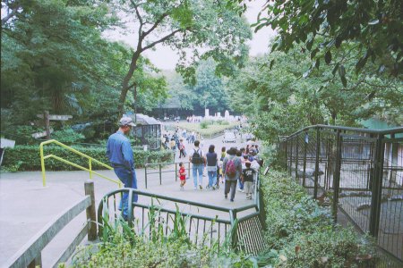 - 動物園入り口すぐのところから園内を望む。家族連れとカップルでできてますね。 (JPEG, 53696bytes)