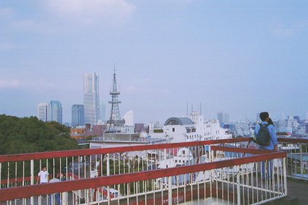 - 動物園を出るとラジオ日本の電波塔 (JPEG, 25091bytes)