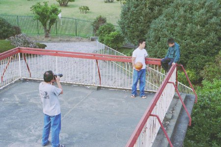 - 展望台の下の段で写真を撮る親子連れ (JPEG, 43807bytes)