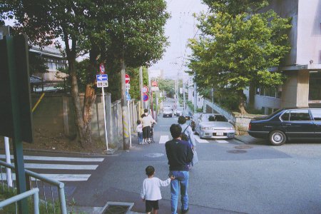 - ほぼ登り切ったところ。文教地区です。 (JPEG, 27915bytes)