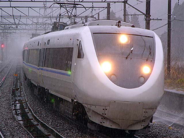 1992年(平成4年)に485系の置き換え用として登場したJR西日本転換後初の新型特急形電車です。 2.車体構造 車体長は21m強で、非貫通先頭部は流線型のシンプルなラインで構成され、側窓は外販と同レベルの大型化された連続窓が配置されてます。 量産車は6両+3両の連結ができるように貫通扉付き先頭車が製造されました。 3.車内設備 グリーン車の座席は2+1列でシートピッチは1,160mm確保され、液晶テレビ、音楽番組、スポット照明、スポット空調を個別に設けてます。 普通席は2+2列でシートピッチが970mm確保され、脚台を側壁に直接取り付け、足下を広くしてます。 トイレは洋式トイレと男子小便用トイレが設けられてます。一部の洋式トイレは車椅子での利用が可能となり、おむつの交換等ができるベビーベットが設けられてます。 多目的室には様々な用途に対応するスペースで、折りたたみ式のソファベットが設けられてます。 また、軽食飲み物の販売を行うスペースと車内販売基地の機能を兼ねた車板準備室が設けられてます。 量産車のトイレは3両に2カ所設けてます。先行試作車も量産車と同様にトイレの増設を行ってます。 4.機器類 制御装置は交直両用電車で初めてGTO-VVVFインバーター制御が採用され、1個の制御装置で1個の190kWの主電動機を制御してます。 補助電源は静止形電源装置(パワートランジスタのSIV)を3両あたり1台設け、室内灯などはセクション通過時に瞬停しないようにバッテリーを介して給電してます。 ブレーキは回生ブレーキ併用電気指令式空気ブレーキを採用し、さらに応加重装置、滑走制御装置を取り付けてます。また、高速走行を考慮し全車車輪ディスクブレーキを採用してます。 台車は軽量ボルスタレス台車で、空気バネ車体直結方式としてます。また、高速走行安定性を確保するためヨーダンパを設置してます。 空調は低重心化を図るため、床上、床下分散のセパレートタイプとし、マイコン制御で冷風、除湿、送風、換気塔をコントロールしてます。 先行試作車は3両で1ユニットという考え方でしたが、量産車は2両で1ユニットとなり編成組み替えが容易になりました。 量産車の補助電源装置はGTO2重チョッパ+IGBT3レベルインバーター方式となりました。 5.主な履歴 1992年(平成4年)7月に先行試作編成が登場し、12月から臨時特急「雷鳥」に充当されました。 1995年(平成7年)に先行試作車を後に登場する量産車と同じ仕様にするため、鷹取工場で改造を受けてましたが、阪神・淡路大震災の被害を受けました。 1995年(平成7年)2月に量産車が登場しました。 2001年(平成13年)に先行試作車が量産車と編成構成を合わせるため、中間車を貫通扉付きの先頭車に変更し6+3両編成とました。 |