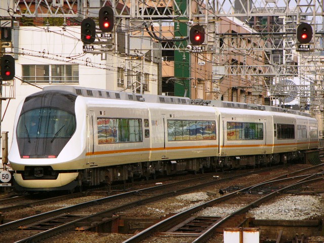 2002年(平成14年)に21000系の更新工事用の予備車確保のために製造された特急形車両です。 愛称名は「アーバンライナーnext」の称号が与えられました。 形式と編成は下記のようになってます。 ←難波 1次車 ク21120形(Tc1)-モ21220形(M1)-モ21320形(Mc)-サ21420形(T)-モ21520形(M3)-ク21620形(Tsc2) ク21620形はデラックスカーとなっています。 2.車体構造 車体長は先頭車21,000mm、中間車20,500mmで、鋼製車体となっています。 先頭形状はカモノハシのくちばしに似た流線型で、先頭窓は1枚の局面ガラス窓が採用され、運転席上部にHID灯を4灯設けられました。 乗降扉は片側に1カ所(モ21320形のみ2カ所)のプラグドアが設けられています。扉が開いたときにステップが伸びる仕組みになっています。 3.車内設備 デラックスカーの座席は海側1人、山側が2人掛けで3列の電動式リクライニングシートが採用されました。シートピッチは1,050mmとなってます。背もたれが大きめに作られており豪華な雰囲気が出てました。リクライニングレバーは肘掛け上部に設けられており、リクライニングさせると座面が前にスライドする構造になってました。テーブルは面積が広いものが採用され、肘掛けに収納するタイプが採用されました。 レギュラーカーの座席は従来車と同じ形状のリクライニングシートが採用されました。シートピッチはデラックスカート同じとなってます。車内で電波を送信し、FMラジオを受信することができました。 トイレはモ21220形、モ21320形、21520形に設置され、21220形に車椅子対応の大型洋式トイレと、男子小便トイレ、モ21320形とモ21520形には女性専用と共用洋式トイレと男子小便トイレが設けられてます。女性専用トイレにはベビーチェアが設けられてます。 4.機器類 制御装置はIGBT-VVVF制御(三菱電機)となり、1台で2台の主電動機(MB-5097A/230kW:三菱電機)が制御できる1C2M方式が採用されました。MT比率は1:1となりました。 駆動装置はWNドライブ式となってます。 制動装置は回生・発電併用電気指令式(KEBS-21A)で、抵抗器を備え、回生制動が動作しない場合、抵抗器により発電電力を消費させる方式となってます。 起動加速度2.5km/h/s、減速度4.0km/h/s、最高速度130km/hとなってます。 台車は近畿車輛製のボルスタレス式で電動車がKD-314形、付随車がKD-314Aが採用されました。 パンタグラフはシングルアーム式のものが採用されました。 5.主な履歴 2003年(平成15年)に鉄道友の会のブルーリボン賞、日本産業デザイン振興会のグッドデザイン選定商品となりました。 2007年(平成19年)9月4日にデラックスカーの喫煙コーナーが廃止になりました。 2007年(平成19年)10月8日より土日ダイヤに限り車内販売が開始されました。 2009年(平成21年)に新型ATSの更新工事を請けました。 |