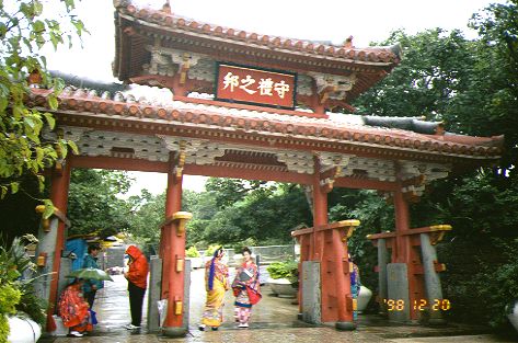 守礼之邦の偏額を揚げる赤瓦の華麗な首里城の第二防門